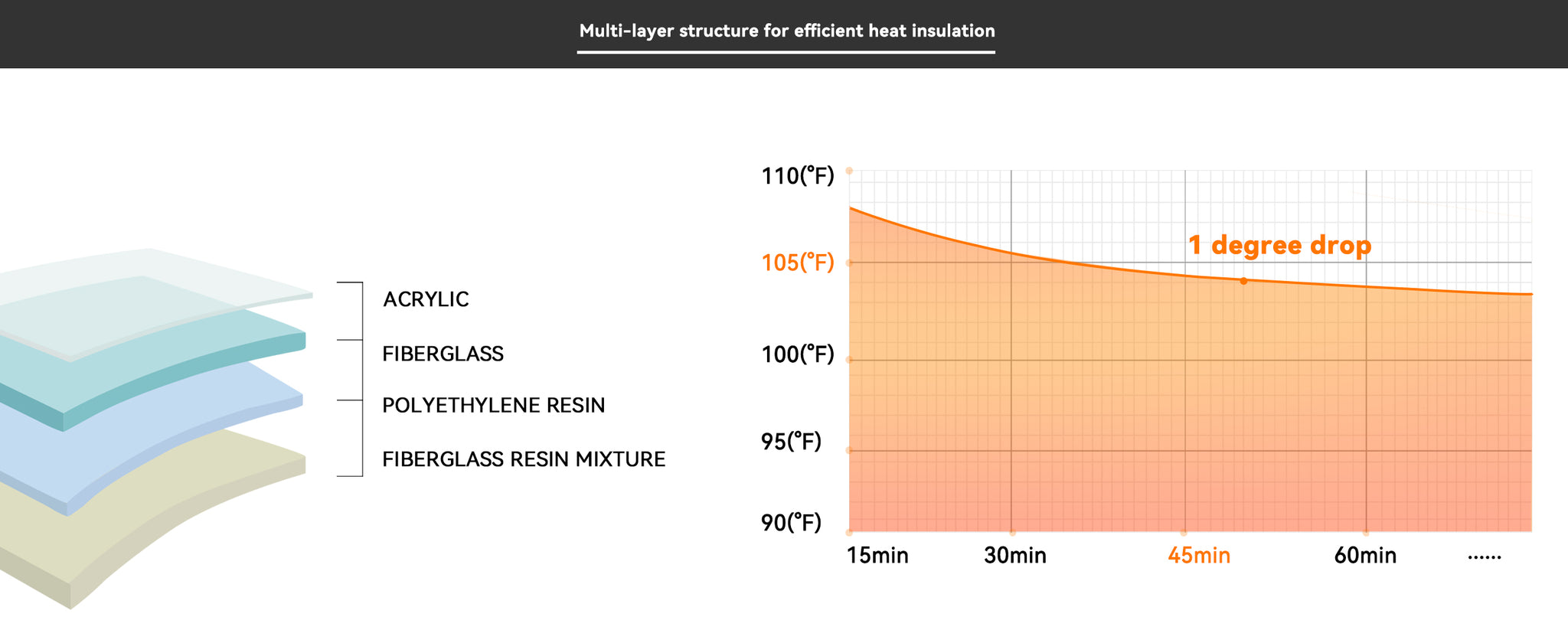- 【OPTIMAL MATERIAL】The FerdY Floridian Walk-in Bathtub is made of durable, quality genuine Lucite Grade 100% glossy white Acrylic that provide optimum insulation. Studies show that at a room temperature of 77 degrees Fahrenheit, water temperature only decreases by 1 degree after about 45 minutes. And without any additional coating that could fade or peel after years, guaranteeing that the surface will not suffer any yellowing for at least 10 years.
